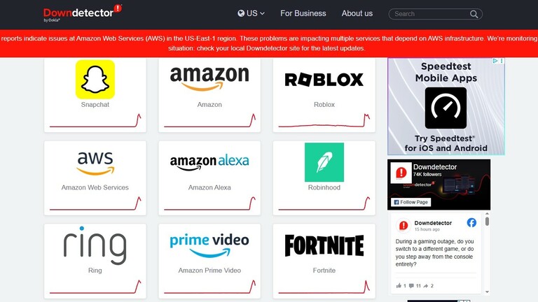 Korisnici su počeli prijavljivati probleme oko 9 sati ujutro po hrvatskom vremenu, a servis DownDetector bilježi probleme na platformama kao što su Snapchat, Duolingo, Ring, Roblox, Fortnite i mnogi drugi. Naravno, pogođeni su i Amazonovi servisi poput Alexe i Primea.