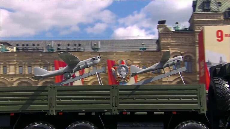 Predsjednik Vladimir Putin, kineski predsjednik Xi Jinping i više od dvadeset drugih stranih čelnika promatrali su kako razne dronove ruske proizvodnje, montirane na kamione, na svojim lanserima prevoze preko prostranog trga, zajedno s drugom vojnom opremom.